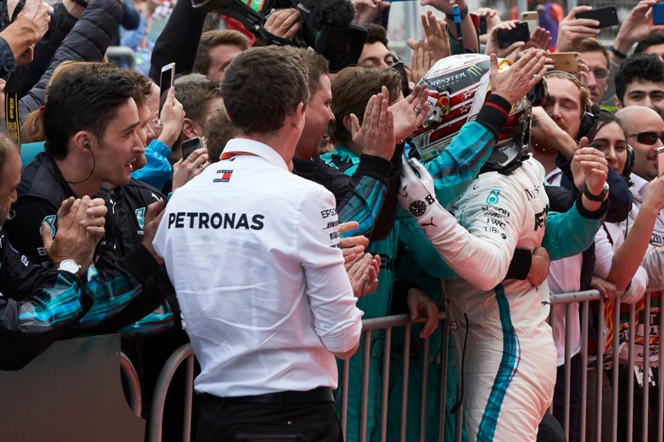 힘겹게 뒤를 따르던 해밀턴과 키미 라이코넨이 차례대로 1~2위로 피니시하며 행운의 결과를 얻는 순간이었다.