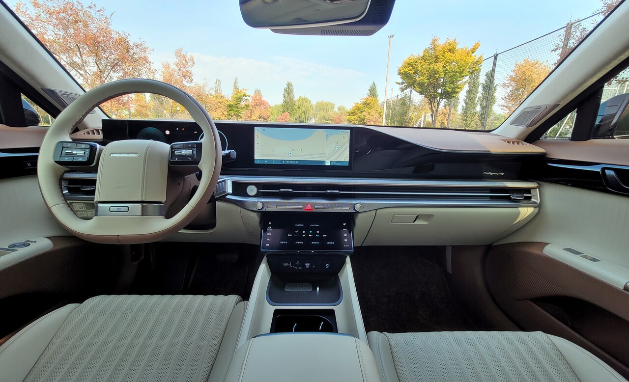 최근 시승한 차량은 2026년형 하이브리드 1.6T 2WD였다. 기본 프리미엄 트림 가격은 4423만원부터 시작한다. 시승차는 상위 캘리그래피 트림으로 2열 전동식 도어 커튼, 파노라마 선루프, 프리뷰 전자제어 서스펜션2 등 옵션이 추가돼 5746만원이었다.