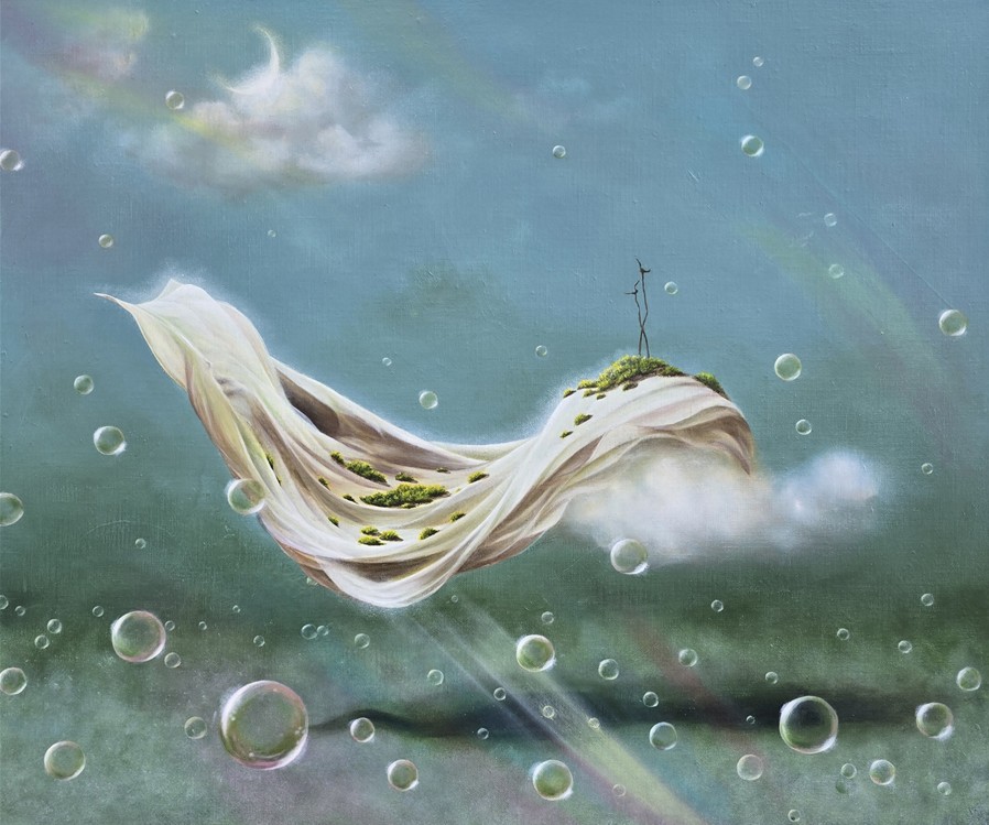 ‘내면의 풍경-2’는 다층적인 천 위에 이끼와 비눗방울이 떠 있는 환상적 공간을 통해 인간 내면의 복잡성을 시각화했으며, ‘달빛’은 작은 생태계를 통해 고요한 밤의 사유와 치유의 메시지를 전한다.
