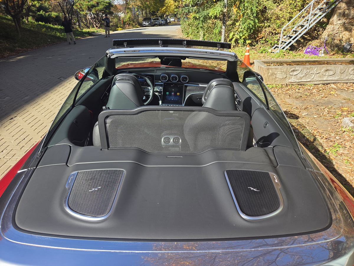 카브리올레의 핵심은 개방감이다. CLE 53의 소프트톱은 다층 구조로 단열 성능이 뛰어나 사계절 내내 사용 가능했고, 최대 시속 60km에서 20초 이내로 개폐할 수 있어 실용성이 높았다. 주행 중에도 에어캡과 에어스카프 시스템이 작동해 바람을 효과적으로 제어하고 따뜻한 공기를 불어넣어, 추운 계절에도 쾌적하게 오픈 주행을 즐길 수 있다.
