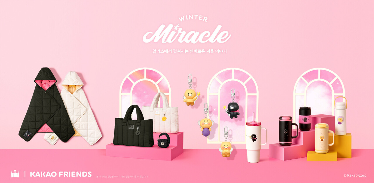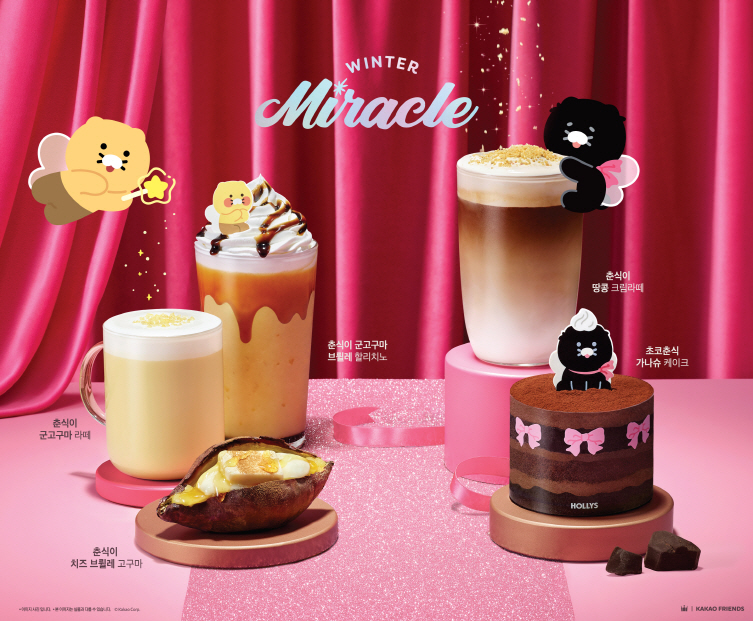 ‘Winter Miracle’을 테마로 한 이번 콜라보레이션은 요정으로 변신한 춘식이가 마법을 부린 듯한 다채로운 구성으로 기획됐다. 메뉴는 음료 3종, 디저트 2종으로 총 5종이며, MD는 텀블러, 가방 등 실용성과 디자인을 모두 갖춘 아이템으로 구성됐다.