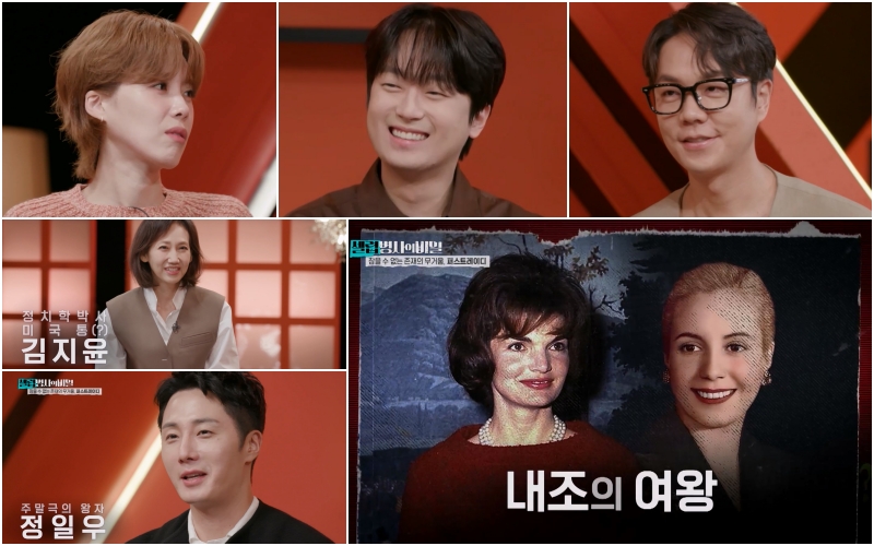이날 방송에서는 ‘재키 스타일’을 탄생시킨 미국 대통령 존 F. 케네디의 아내 재클린 케네디와, 민중의 영웅으로 불린 아르헨티나 영부인 에바 페론의 삶을 한 남자를 매개로 연결한 스토리가 소개돼 시청자의 관심을 끌었다. 배우 정일우와 정치학자 김지윤 박사가 출연해 역사적 맥락과 국제 정세 속 두 인물의 역할을 생생하게 전달했다.