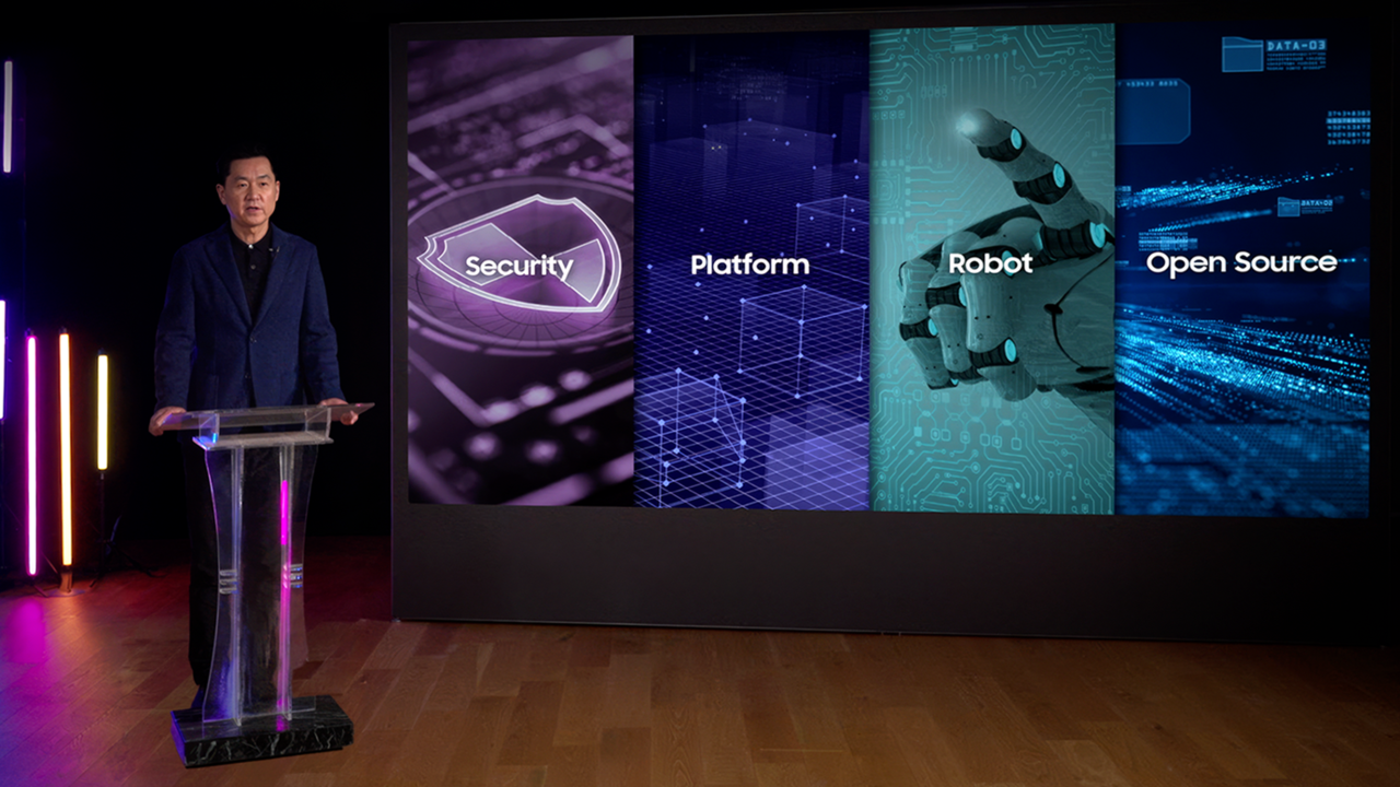 삼성전자는 이날 기조연설을 통해 인공지능 전환 시대의 4대 핵심 기술 분야로 ▲AI 기반 차세대 보안 기술 ▲지능형 소프트웨어 플랫폼 ▲로봇 AI 기술 ▲오픈소스 생태계 확장을 제시했다. 리눅스 재단의 짐 젬린 의장은 오픈소스 AI의 최신 기술 동향에 대해 발표했다.