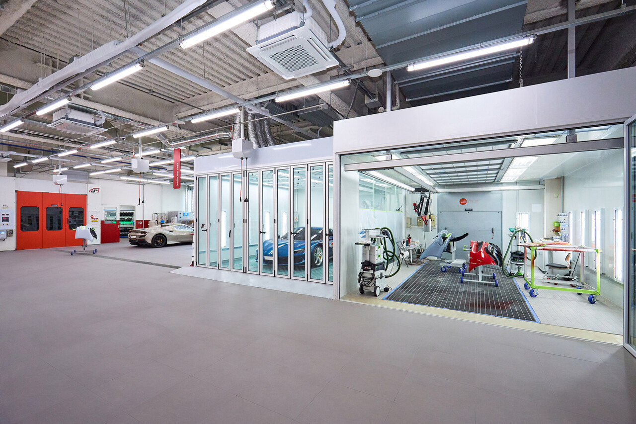 특히 전동화 시대에 대비한 인프라 확충에도 초점을 맞췄다. 7층 전체는 고전압(HV) 차량 전용 정비 구역과 트레이닝룸으로 구성되어 하이브리드 및 향후 전기차 정비까지 대응 가능한 최첨단 설비를 갖췄다. FMK는 SF90 스트라달레·스파이더, 296 GTB·GTS 등 페라리 PHEV 모델 유지보수 체계를 본격화할 방침이다.