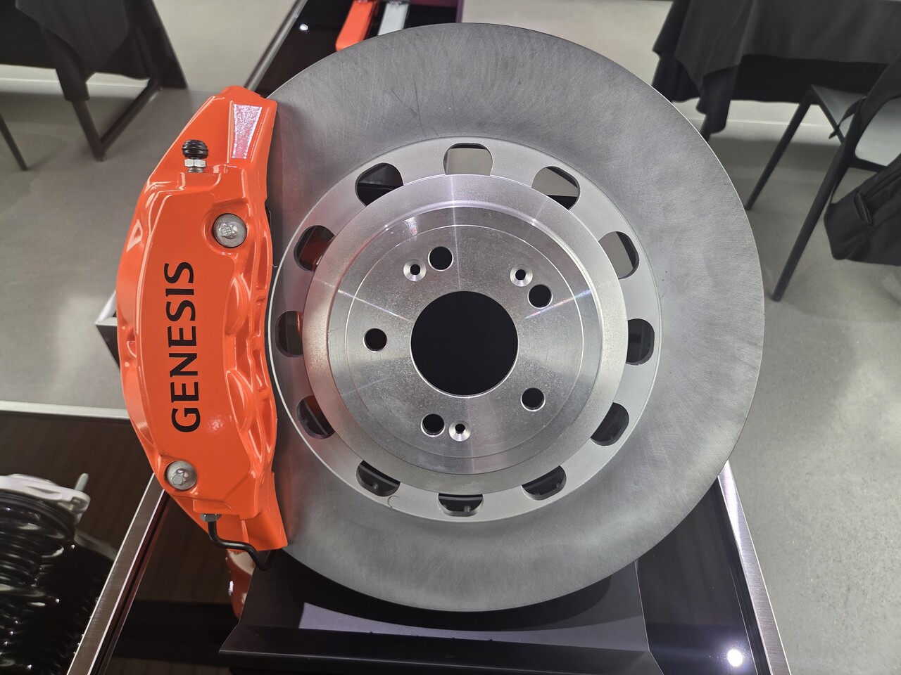 제동 성능 확보를 위해 전륜에는 모노블럭 캘리퍼와 대구경 디스크가 장착됐다. 타이어 역시 미쉐린이 아닌 21인치 미쉐린 파일럿 스포츠 4S 또는 제네시스와 협업한 피렐리 P 제로 등 고성능 전용 타이어(폭 275mm)가 적용돼 강력한 접지력을 제공한다.