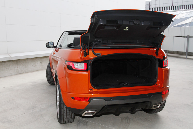 크기도 작은 편이어서 소프트탑을 오픈하든 안 하든 운전이나 주차가 까다롭지 않다. 길이와 폭은 각각 4370mm, 1980mm로 기존 이보크와 동일한 수준이면서도 높이는 3cm 가량 낮춰 컨버터블의 매력을 살렸다. 트렁크도 골프백을 넣기에 충분하다.