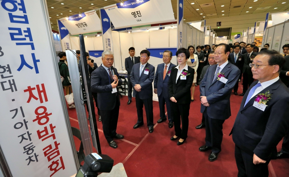 현대기아차는 2일 서울 강남구 코엑스에서 김영주 고용노동부 장관, 권기홍 동반성장위원장, 박건수 산업통상자원부 산업정책실장, 김용근 자동차산업협회장, 이영섭 현대기아차 협력회장, 윤여철 현대차 부회장 등 각계 관계자들이 참석한 가운데 ‘2018 현대기아차 협력사 채용박람회’ 개막식을 열었다.